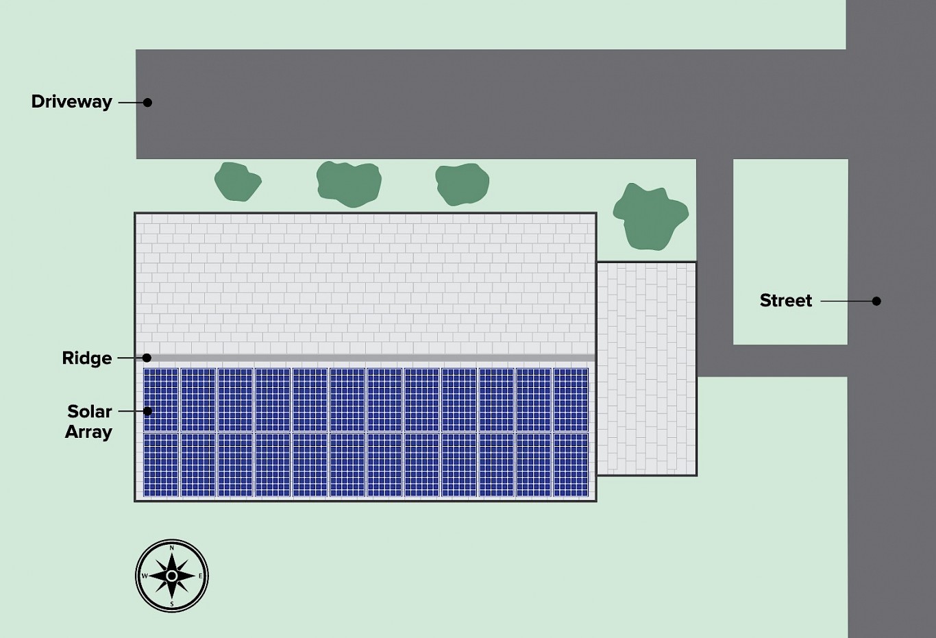 Here the array is facing the street and two access pathways are provided, along with 1.5 foot setbacks on both sides of the ridge to make a three foot pathway.