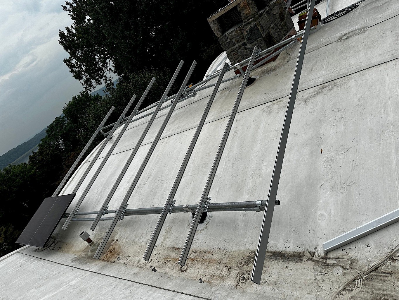 This past summer, Rivertown Solar encountered its most challenging roof to date, a curved, triple-barrelled EPDM roof, made of 2 1/4" decking material covered with 2" of extruded polystyrene insullation.